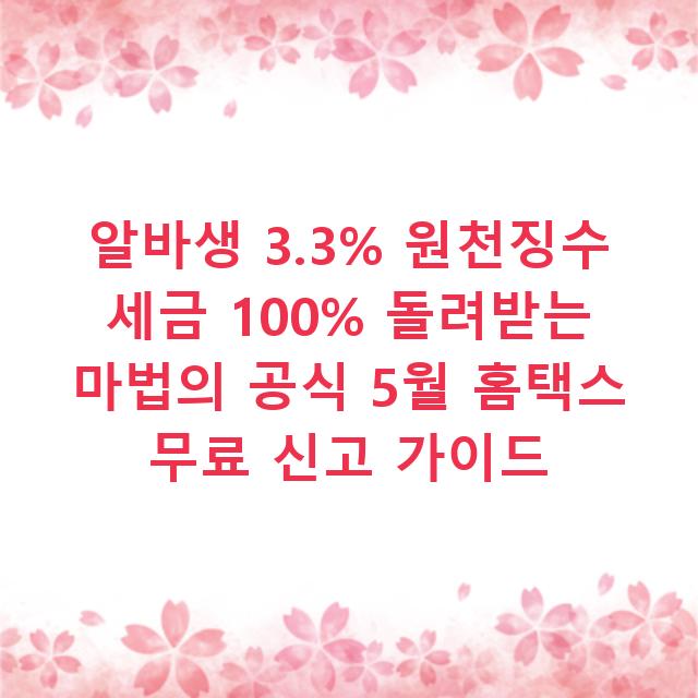 3.3% 세금 환급은 알바생의 당연한 권리이며, 5월 홈택스 신고를 통해 간편하게 되찾을 수 있습니다.