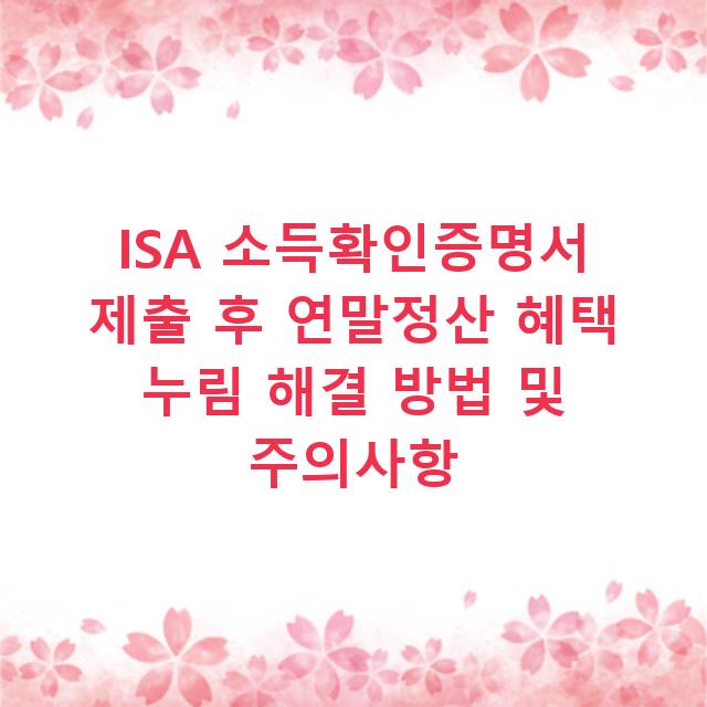 서류를 냈는데 왜 환급금은 그대로인지 궁금하셨던 분들 많으시죠. 분명히 ISA 소득확인증명서를 제출했는데, 5월이 되어도 연말정산에서 특별한 혜택이 적용되지 않은 경우가 종종 있습니다. 단순한 실수로 수십만 원의 비과세 혜택을 그냥 날려버리는 상황이죠…