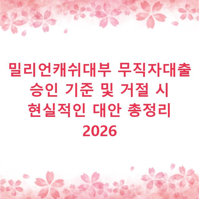 밀리언캐쉬대부 무직자대출 승인 기준 및 거절 시 현실적인 대안 총정리 2026