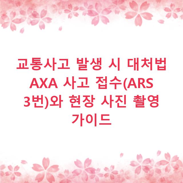 교통사고가 났을 때 당황하지 말고, 먼저 안전을 확보하세요. AXA 사고 접수는 ARS 3번으로 빠르게 가능합니다. 가장 중요한 것은 현장 사진을 꼼꼼히 찍어 디지털 증거물을 확보하는 것입니다. AXA 다이렉트 자동차보험 공식 사이트 금융감독원 공식 …